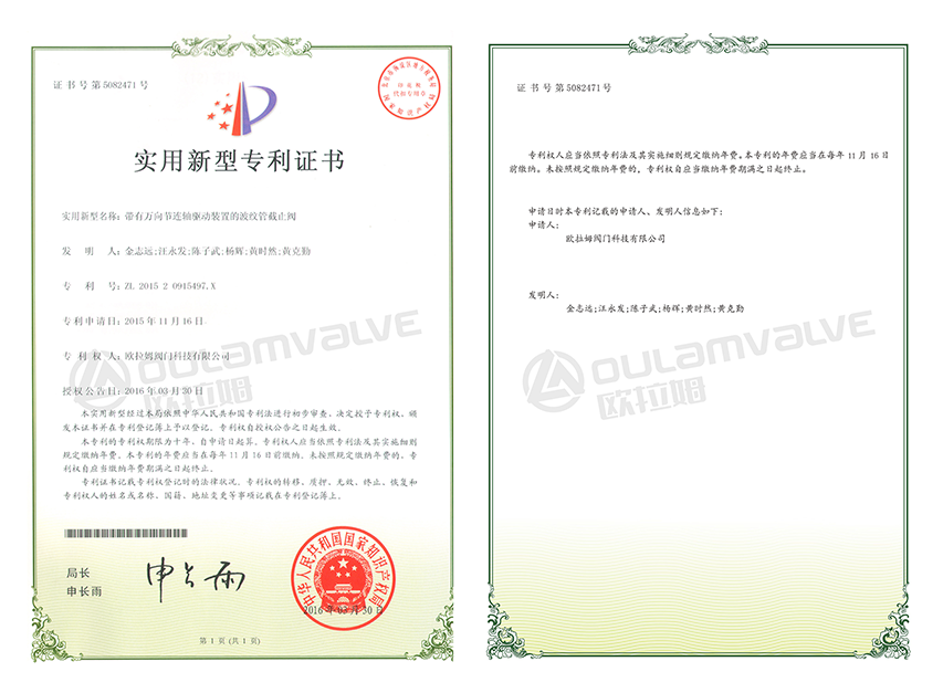 帶有萬向節連軸驅動裝置的波紋管閘閥