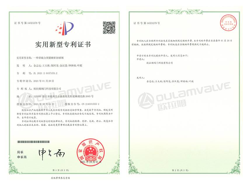 本實用新型公開了一種帶磁力預緊硬密封球閥,包括閥體,閥體兩側均連接有閥蓋,閥體內設有閥球,閥體頂端連接有執行器,執行器用于驅動閥球在閥體內轉動,閥蓋靠近閥球一側分別設置磁力機構,磁力機構與閥球之間設置硬密封閥座,為硬密封閥座與閥球提供密封力;通過在閥蓋靠近閥球一側分別加裝磁力機構,當閥門關閉時,線圈部件通電,磁鐵與線圈部件之間產生的電磁效應,產生相反的磁場,將磁鐵推向閥球一側,由磁鐵將硬密封閥座抵在閥球一側,為硬密封閥座與閥球提供密封力,完成閥球在閥體內的固定,從而提升球閥的密封性能,閥球轉動時,不與硬密封閥座直接接觸,不易磨損,可有效提升球閥的使用壽命。
