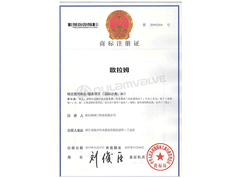 “圓形歐拉姆標志英文OULAM”商標注冊證