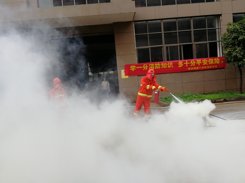消防演練開始, 行政安全員徐總首先向大家講解了火災的危害性、消防的重要性及如何減少火災的發生。然后用通俗易懂的語言詳細講解常用手提式干粉滅火器的結構及使用方法,并使用干粉滅火器對現場小型模擬火點進行滅火示范。