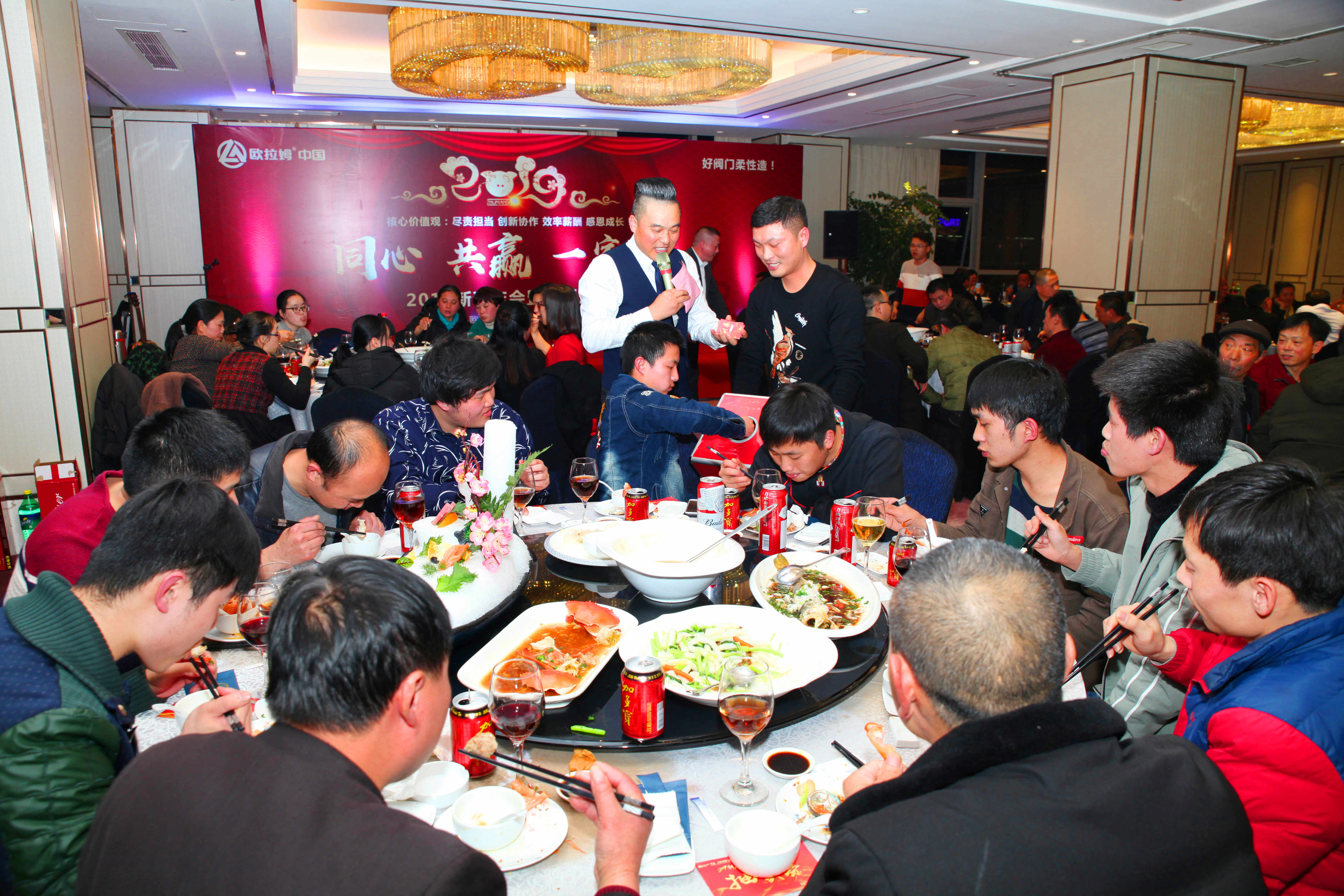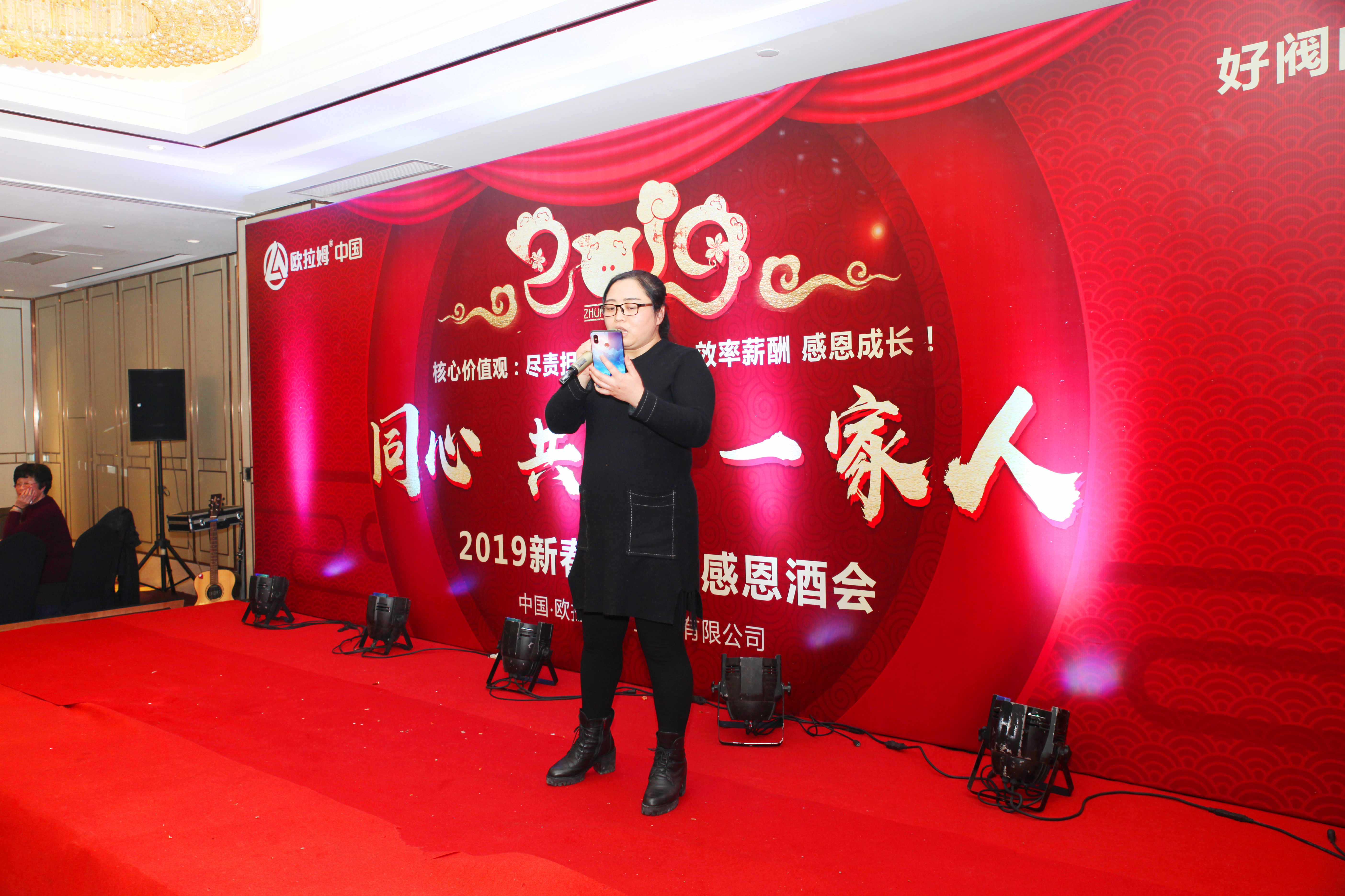 隨著震撼十足的主持人開場白聲中拉開了酒會的序幕,酒會分為表彰2018優秀員工和2019展望。現場抽獎等三部分進行。現場獎品有手機、洗衣機、電飯煲等精美禮品。讓歐拉姆家人在酒會上吃飽喝好還有禮品可以拿。