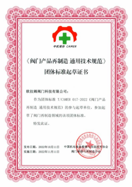為了推動高端閥門國產化進程,總結石化領域關鍵閥門國產化應用成果,會上啟動了高端閥門國產化之路大型調研活動,并發布了《閥門產品再制造 通用技術規范》團體標準。受到與會專家和企業的一致好評的起草單位歐拉姆閥門,成功榮獲《閥門產品再制造 通用技術規范》團體標準的起草單位稱號。這一榮譽不僅彰顯了歐拉姆閥門在閥門再制造領域的技術實力和領導地位,更為推進高端閥門國產化進程注入了新的動力。